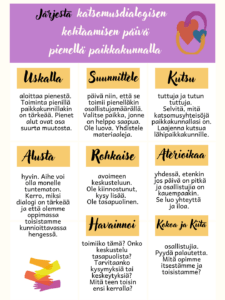 Lisää koulujen ja päiväkotien järjestämästä yhteisymmärrysviikon toiminnasta löydät Dialogitaitajien sivuilta. (Psst! Voit myös lähettää meille oman esimerkkisi sivuille lisättäväksi!)