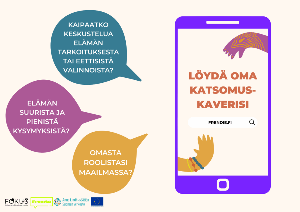 Etsi katsomuskaveri -toiminto on luotu Frendie-sovellukseen (entinen Kaverisovellus). Frendie on maksuton digitaalinen verkkosovellus, joka toimii kaikilla älylaitteilla, eikä sitä tarvitse ladata erikseen.